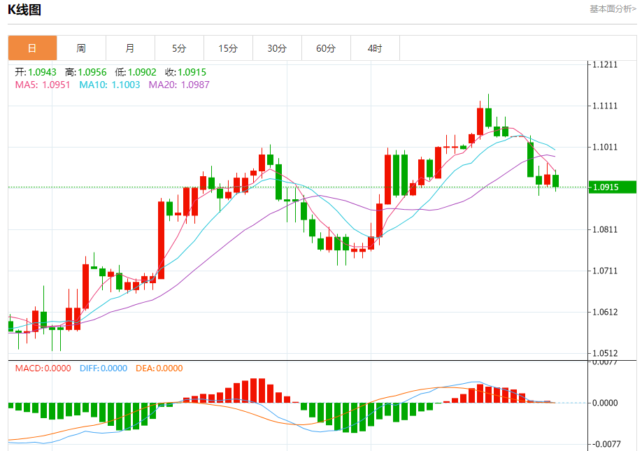 今日周五,截止目前欧元兑美元报1.0917,下跌0.26%。