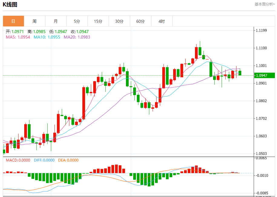 今日周五,截止目前欧元兑美元报1.0948,下跌0.23%。