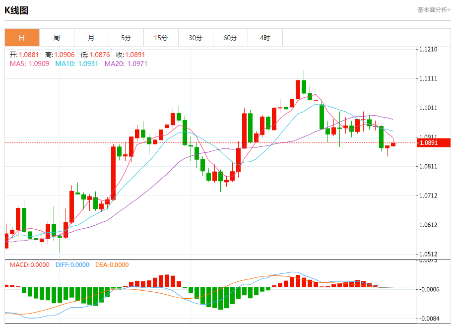 周四欧市盘中,欧元兑美元交投于1.0888,涨幅为0.06%。