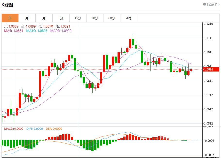 今日周四,截止目前欧元兑美元报1.0891,上涨0.07%。