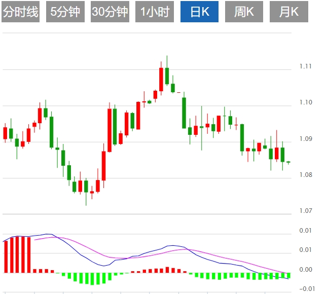 欧元/美元技术走势分析:继续下行