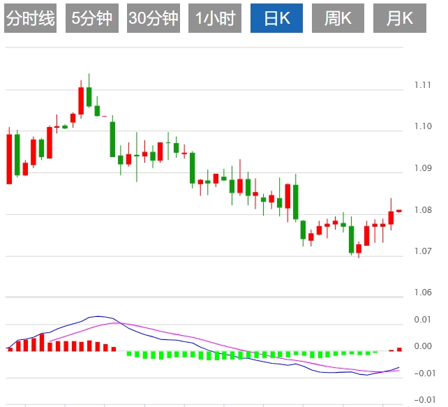 欧元/美元仍被困在200日均线1.0830的看跌一侧,该货币对最近跌至1.0700,是欧元/美元自去年11月以来的最低买盘。该货币对将连续第五次看涨收盘,但仍较去年12月的峰值1.1140下跌约3%。