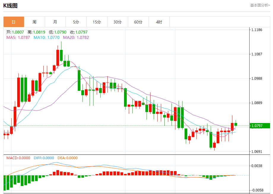今日周三,截止目前欧元兑美元报1.0798,下跌0.09%。