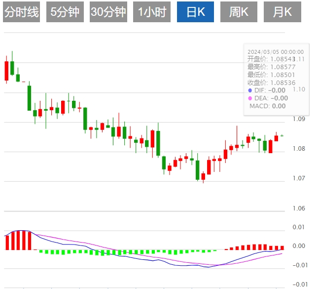 周二亚盘,欧元/美元走低,现报1.0851。欧元/美元在近期上行阻力区震荡,降息押注锁定。此外,美国非农就业数据将成为本周的关键数据。