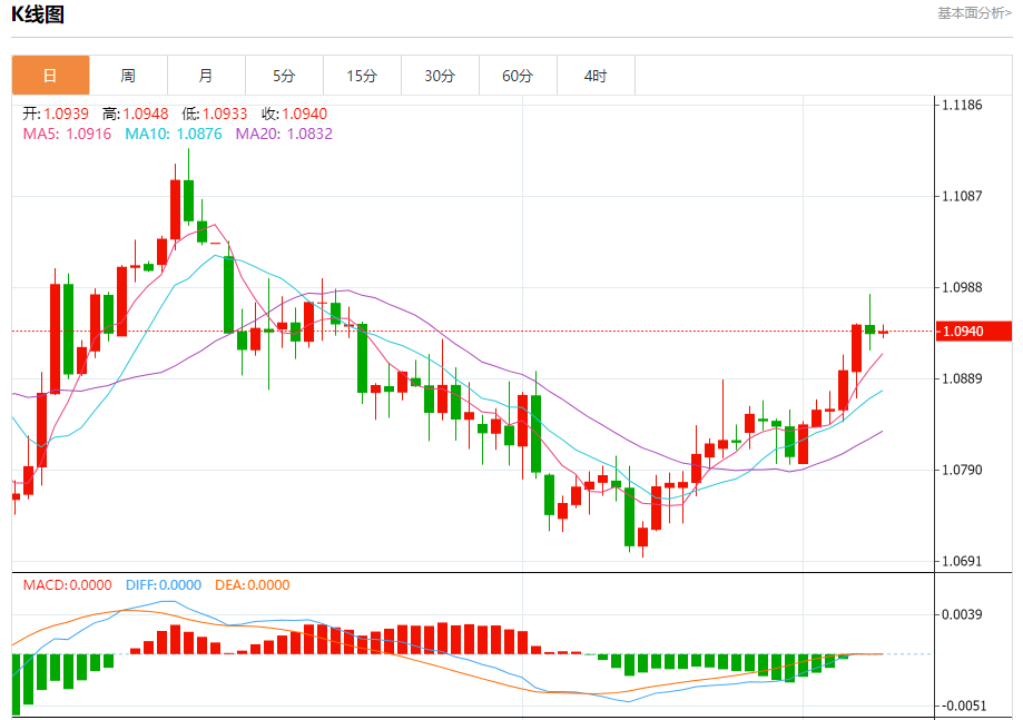 今日周一,截止目前欧元兑美元报1.0942,上涨0.02%。