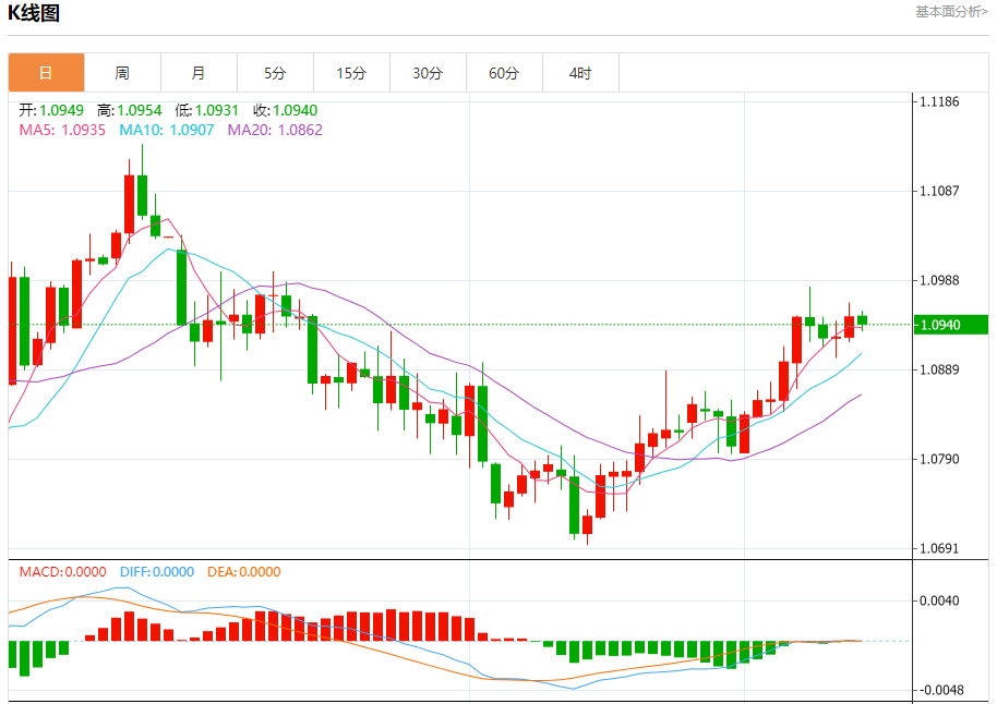 今日周四,截止目前欧元兑美元报1.0942,下跌0.06%。