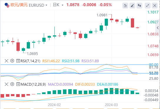 若欧元/美元突破3月份高点1.0981(3月8日),可能推动欧元/美元测试周内高点1.0998(1月11日),若突破该水平,欧元/美元将测试1.1000的心理关口,然后是2023年12月高点1.1139(12月28日)。