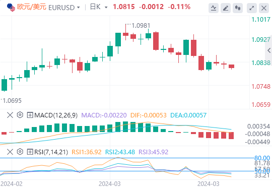 上行方面,欧元/美元预计将在3月份高点1.0981(3月8日)、周线高位1.0998(1月11日)和心理关口1.1000遇到阻力。若欧元/美元在此基础上进一步上涨,可能会测试2023年12月高点1.1139(12月28日)。