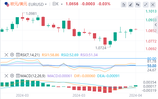 2、本周的注意力将转移到周三公布的美国3月消费者价格指数(CPI)数据,此前2月份的年通胀率为3.2%,高于预期。3月数据强于预期,可能会抑制6月降息的预期,而疲软的通胀数据可能会助长对降息的猜测。
