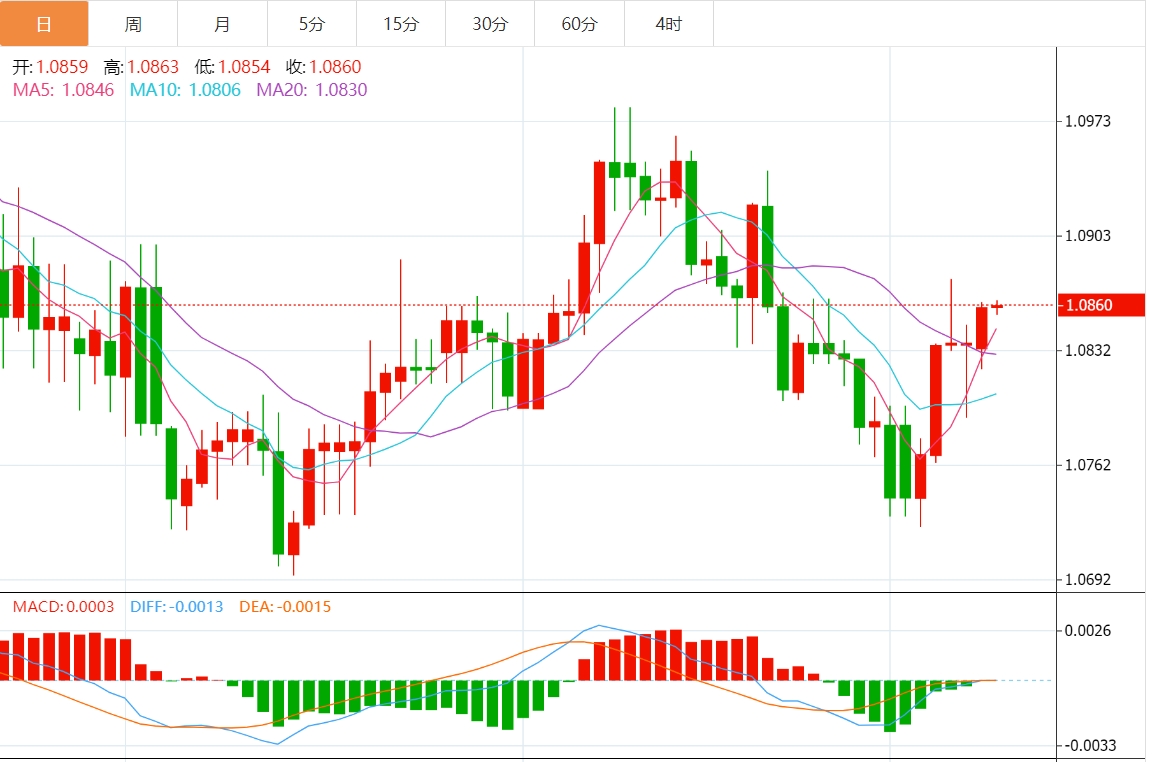 周二欧盘,欧元/美元徘徊于1.0853附近,如果对欧洲央行和美联储降息步伐不同的押注发挥作用,欧元将走软,不排除欧洲央行本周四降息的可能性。