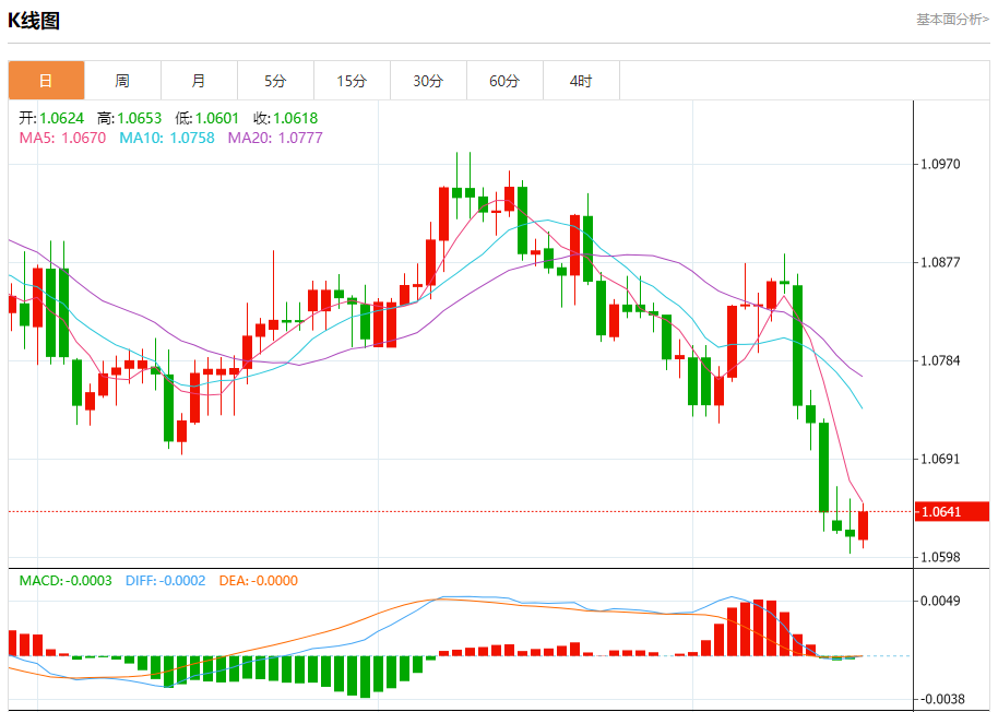 今日周三,截止目前欧元兑美元报1.0642,上涨0.22%。