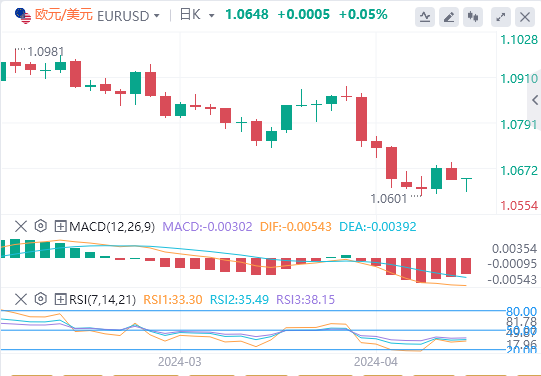 2、美联储主席杰罗姆·鲍威尔(JeromePowell)周二指出,由于通胀在今年前三个月继续出人意料地上行,货币政策需要在更长时间内保持限制性。亚特兰大联储主席拉斐尔·博斯蒂克(RaphaelBostic)周四表示,预计美国通胀率将以低于许多人预期的速度回到2%的目标。博斯蒂克补充说,他愿意保持耐心,年底前可能会降息。与此同时,纽约联储主席威廉姆斯表示,他并不感到降息的紧迫性,货币政策处于有利地位。强劲的美国经济数据和长期走高的美国利率叙事继续提振美元,并成为欧元/美元货币对的逆风。