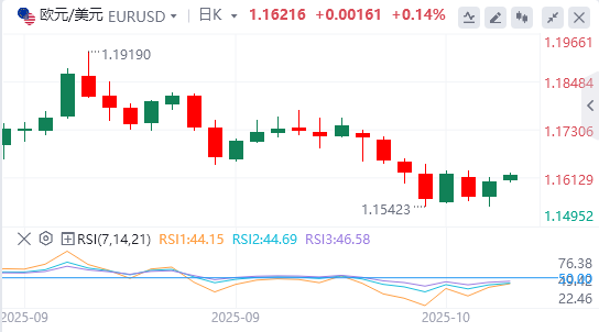 10月15日,周三欧市初盘,欧元/美元货币上涨至1.1620附近。在美联储(Fed)主席杰罗姆·鲍威尔(JeromePowell)的言论加剧了本月降息的押注后,美元(USD)兑欧元(EUR)走软。欧元区8月工业生产数据将于周三晚些时候公布。