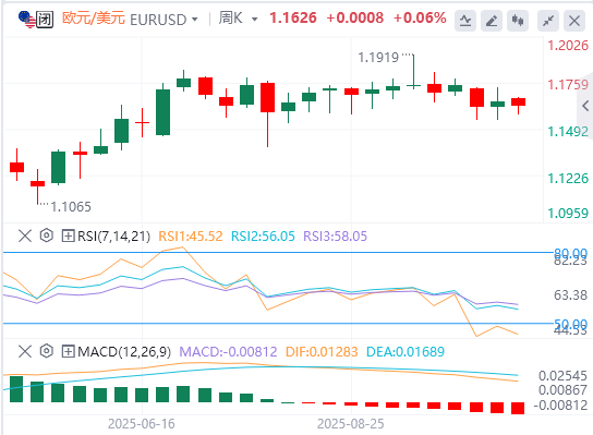 本周,欧元/美元汇率在1.1620区域收官,过去数日市场表现低迷,几乎未呈现出明显活力。这背后,是美国政府持续停摆导致宏观经济数据缺失,金融市场缺乏有效信息指引。同时,美联储(Fed)与欧洲央行(ECB)货币政策会议即将召开,政策制定者却未释放关于货币政策决定的任何线索,进一步加剧了市场的不确定性。