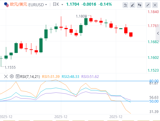 1月5日亚市早盘,欧元兑美元延续跌势,交投于1.1710附近。主要受美国对委内瑞拉采取强硬行动引发的地缘政治风险升级驱动。