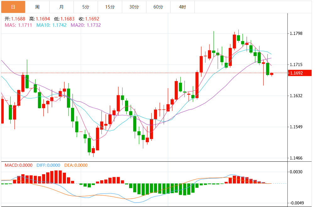 今日周一,截止目前欧元兑美元报1.1683,下跌0.31%。