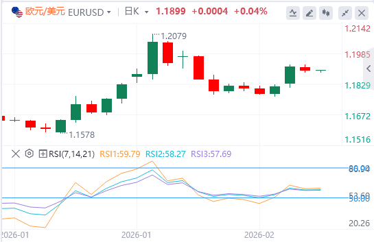 2月11日,周三亚市盘中,欧元/美元汇率在1.1900附近呈狭窄交易区间波动,交易者选择等待美国月度就业数据公布后再进行新的方向性押注。