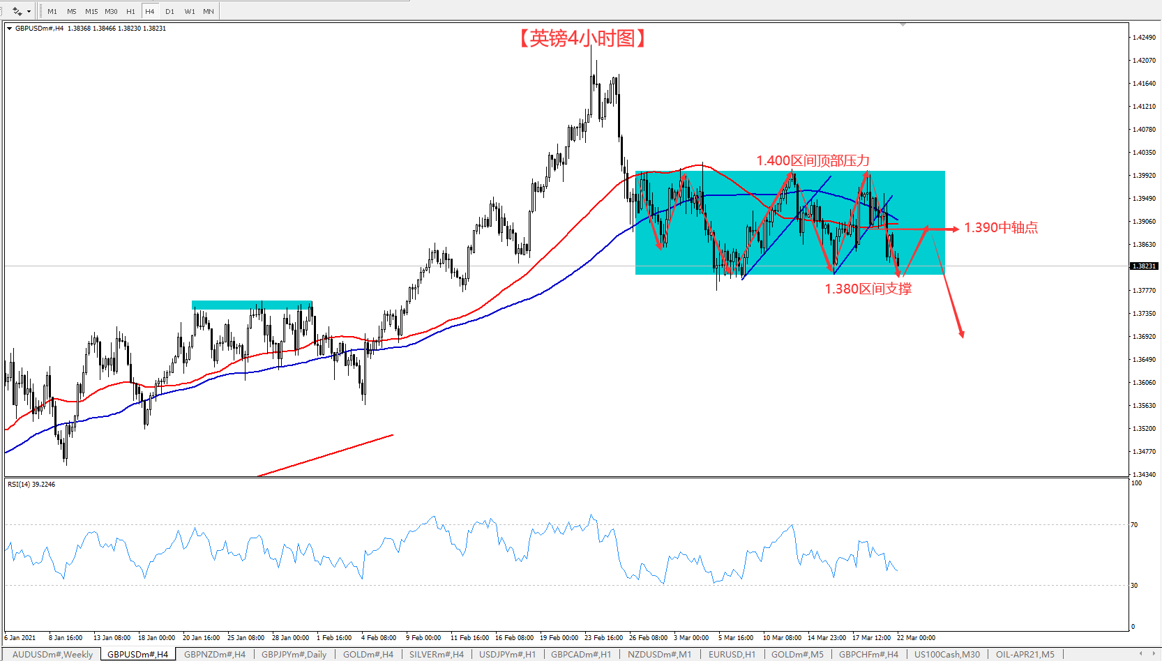 上周阶段所持有的1.395的空单,1.380附近可以选择先行离场,不需要在等1.375,跌破1.380进一步跟进就可以了,周内先看这段区间的突破。