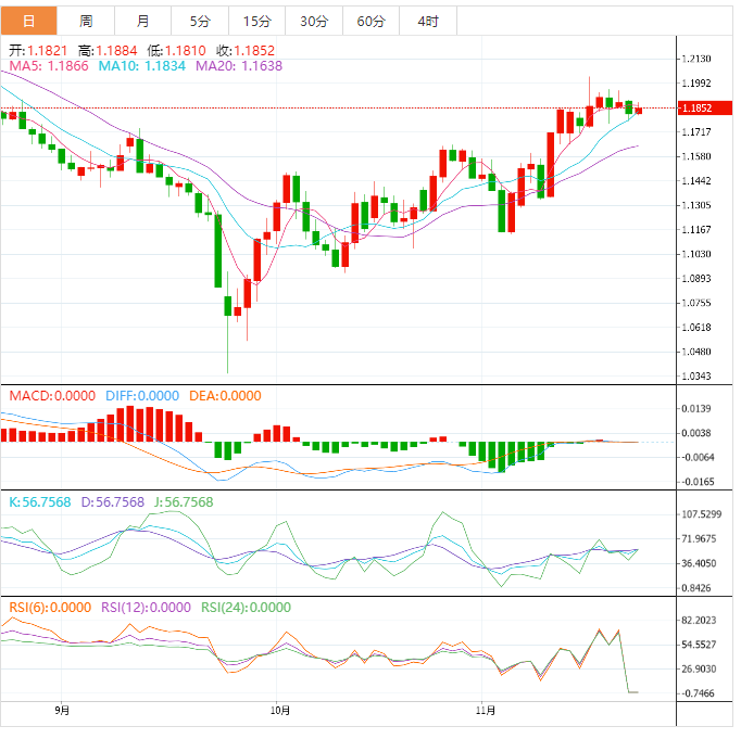 英镑兑美元没有利用盘中的涨幅,走势与当日高点相反。英镑货币对略低于1.19世纪中期,当日上涨0.20%,仍受美元的支配。