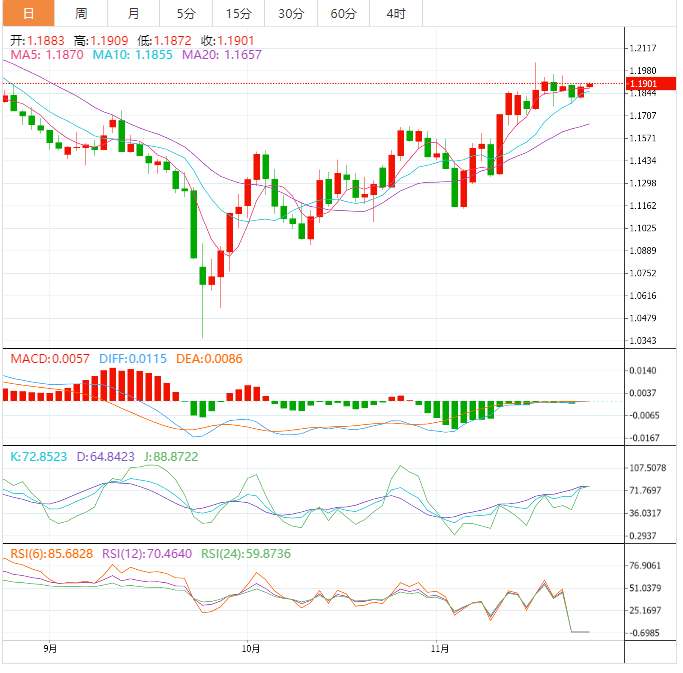 今天的预期交易区间在1.1810的支撑位和1.1990的阻力位之间。
