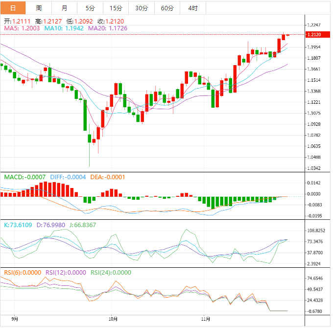 今天的预期交易区间在支撑位1.2030和阻力位1.2210之间。