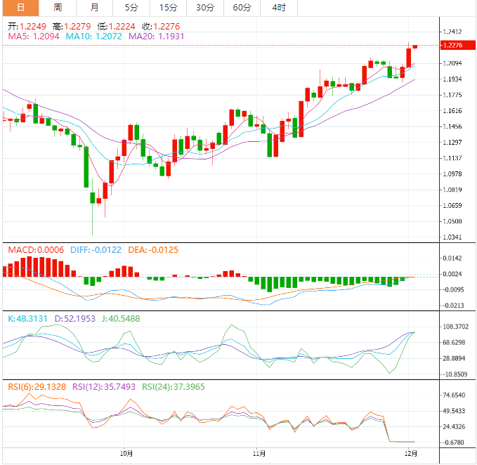 周五盘中,英镑兑美元上涨至1.2279,涨幅0.19%。