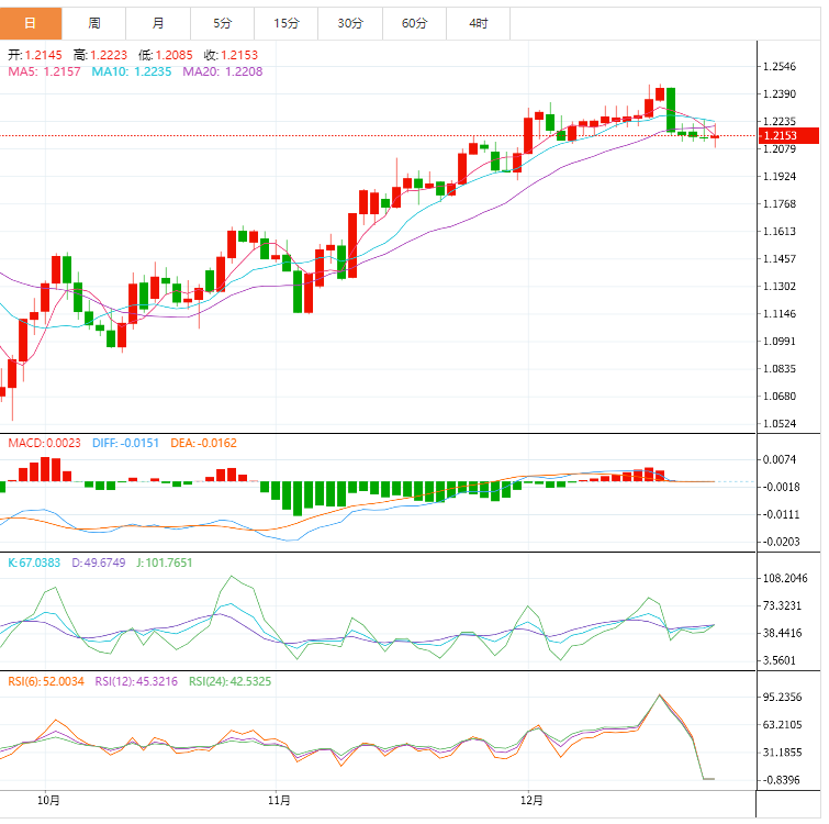 周二盘中,英镑兑美元上涨至1.2154,涨幅0.06%。