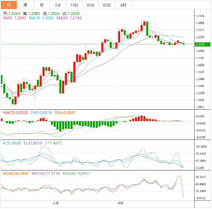 周二盘中,英镑兑美元下跌至1.2024,跌幅0.17%。
