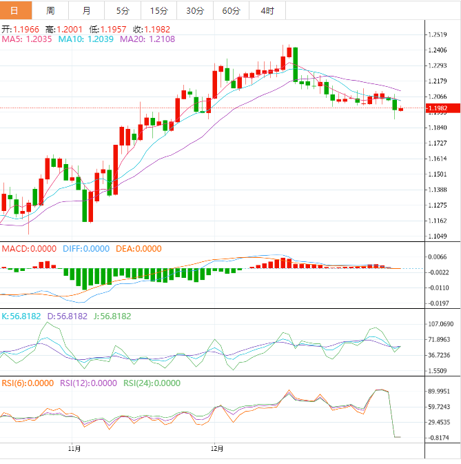 要想下行,英镑需要强力击穿一轮支撑位1.1900,这将把英镑拉向11月11日的高点1.1855。如果跌破后者,英镑将跌至11月21日的低点1.1778左右。