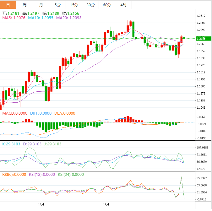 周二盘中,英镑兑美元下跌至1.2157,跌幅0.23%。