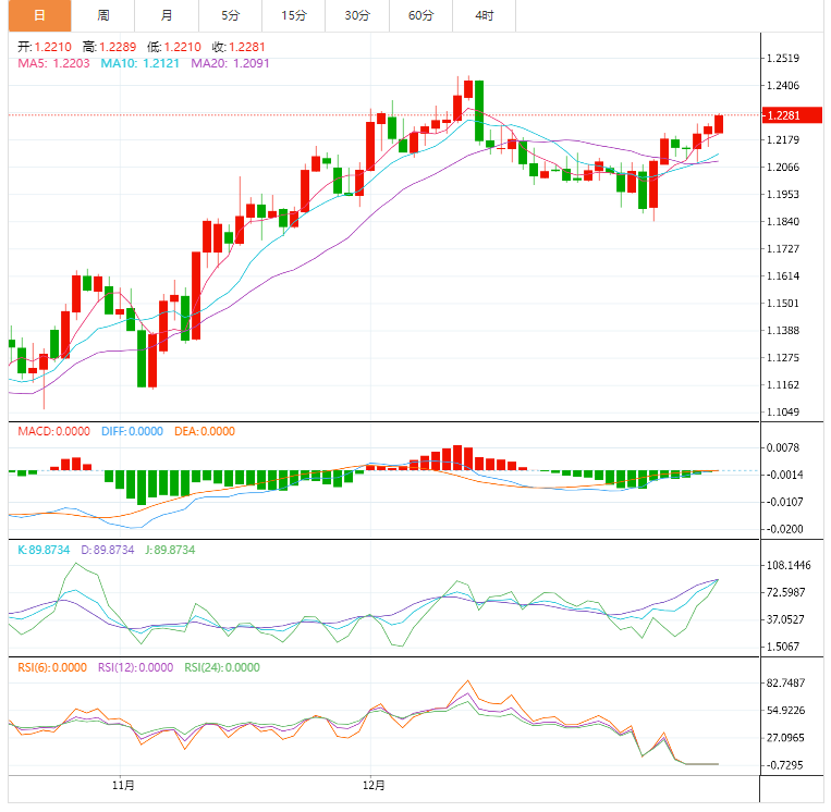 从技术上看,上周楔形下跌的确认对英镑多头有利,因为他们夺回了关键的阻力位1.2250。接下来,买家希望在最终向六个月高点1.2446移动时拿下1.2300这个整数。