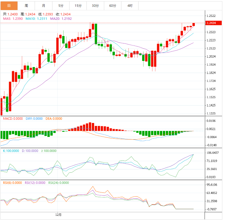 在经历了两周的上涨之后,周一早上亚洲市场多头占据主导地位,英镑兑美元继续处于领先地位。也就是说,英镑兑美元刷新了1.2410附近的盘中高点,并在最近连续第五天上涨。