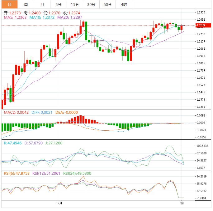 周四盘中,英镑兑美元上涨至1.2375,涨幅0.01%。