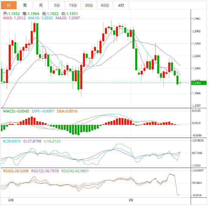 周一盘中,英镑兑美元上涨至1.1951,涨幅0.09%。
