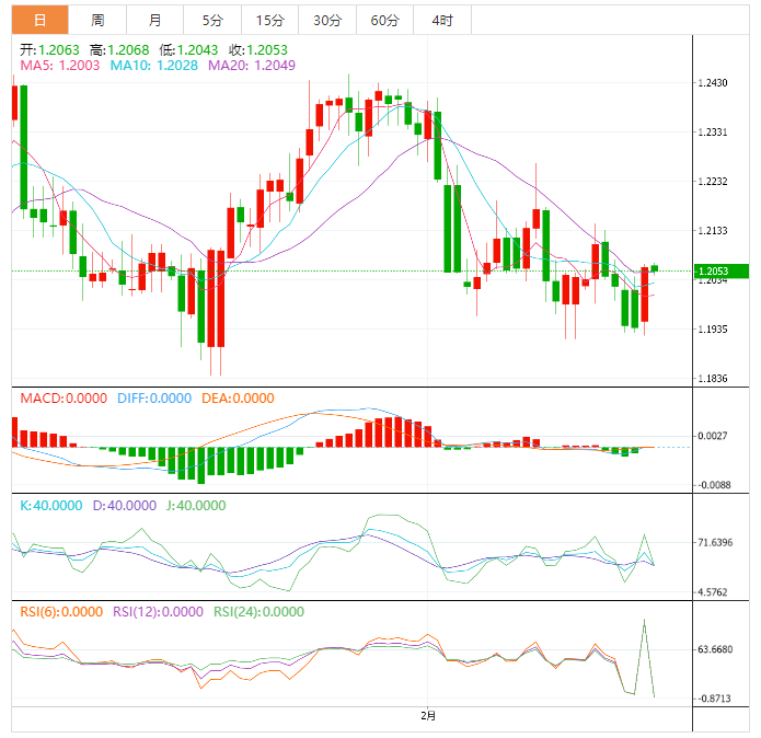 因此,除非跌破1.2040附近的阻力位支撑线,否则英镑兑美元将从2月2日开始戳出一条向下倾斜的阻力线,截止发稿时接近1.2110。