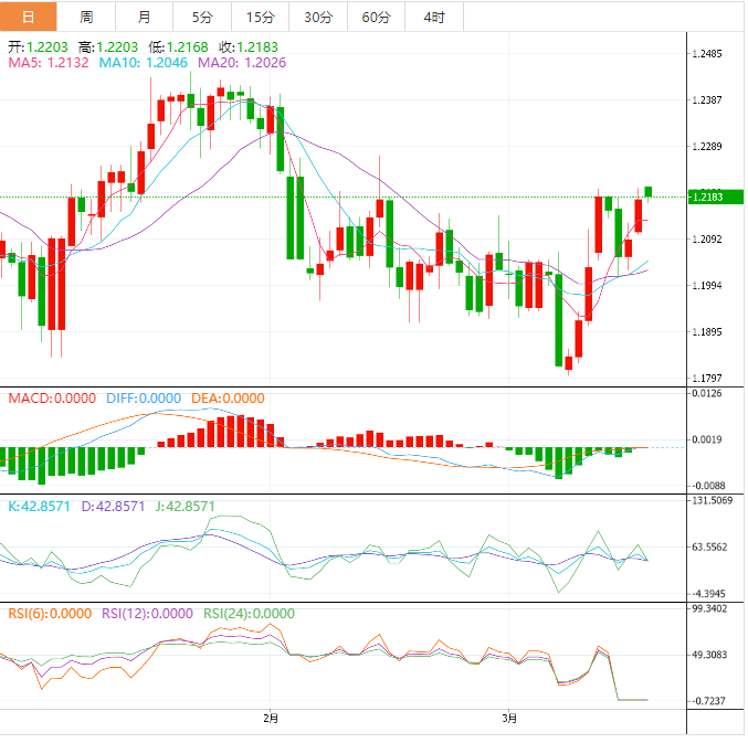 另一个上行障碍是1月底至3月初报价下跌的61.8%斐波那契回档位,大约在1.2200左右。