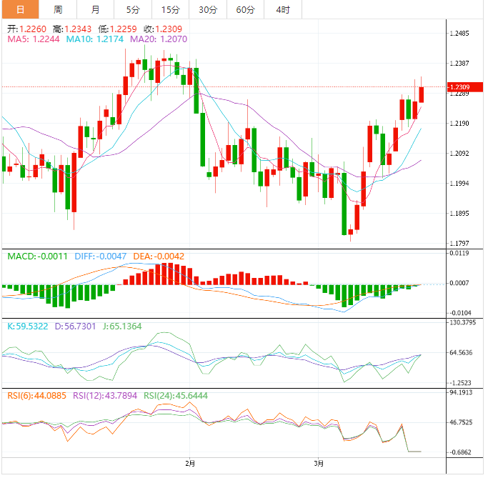 周四盘中,英镑兑美元上涨至1.2307,涨幅0.36%。