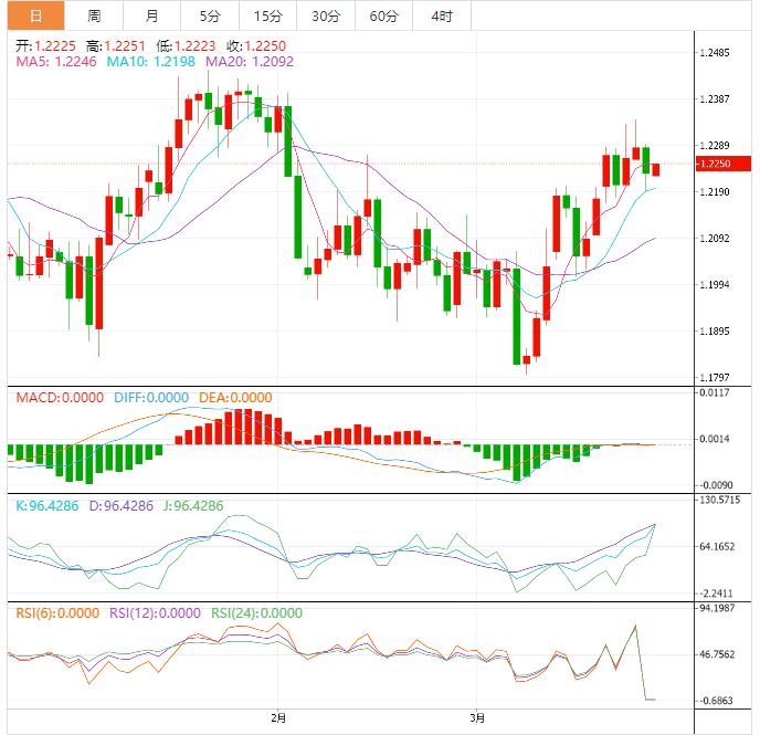 除非升至3月初的支撑线(截至发稿时约为1.2325)之上,否则英镑兑美元仍有可能再次测试约为1.2150的50日移动均线支撑位。