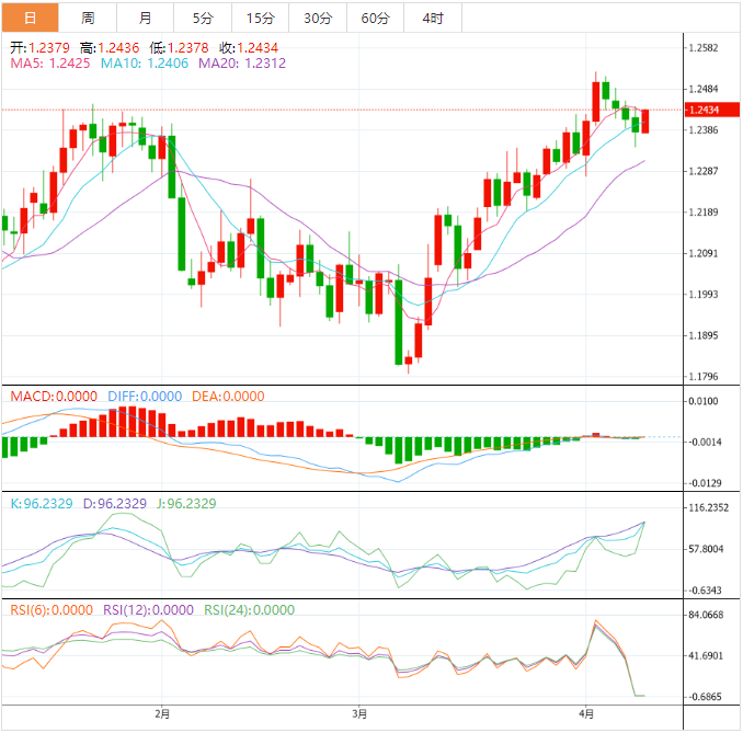 周二盘中,英镑兑美元上涨至1.2435,涨幅0.42%。