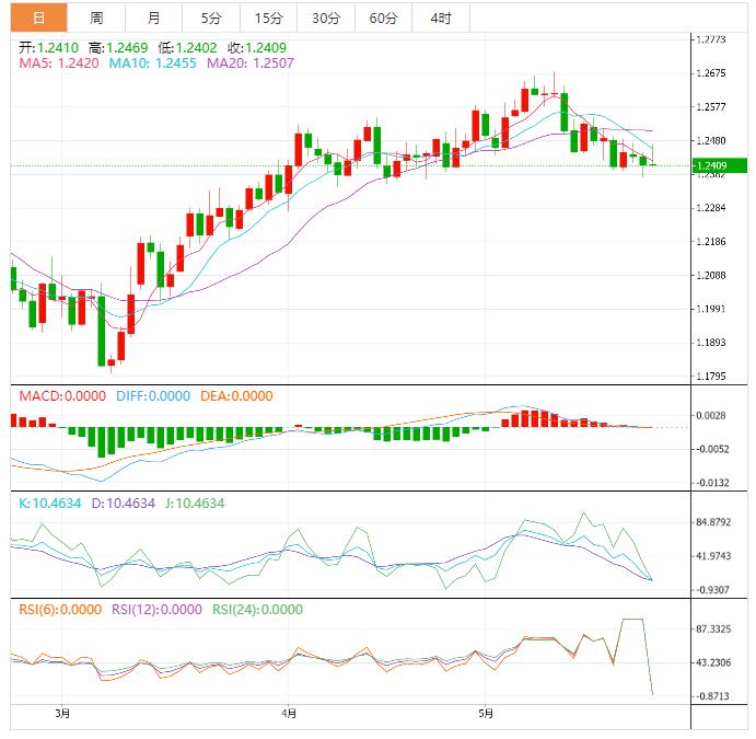 英镑兑美元汇价在欧洲市场上半期回落至其日交易区间的低端,并逐渐淡出盘中升至1.2470区域的看涨行情。该货币对目前位于1.2420区域附近,似乎很容易延长过去两周左右出现的近期回调下滑。