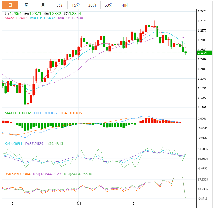 周四盘中,英镑兑美元下跌至1.2355,跌幅0.09%。