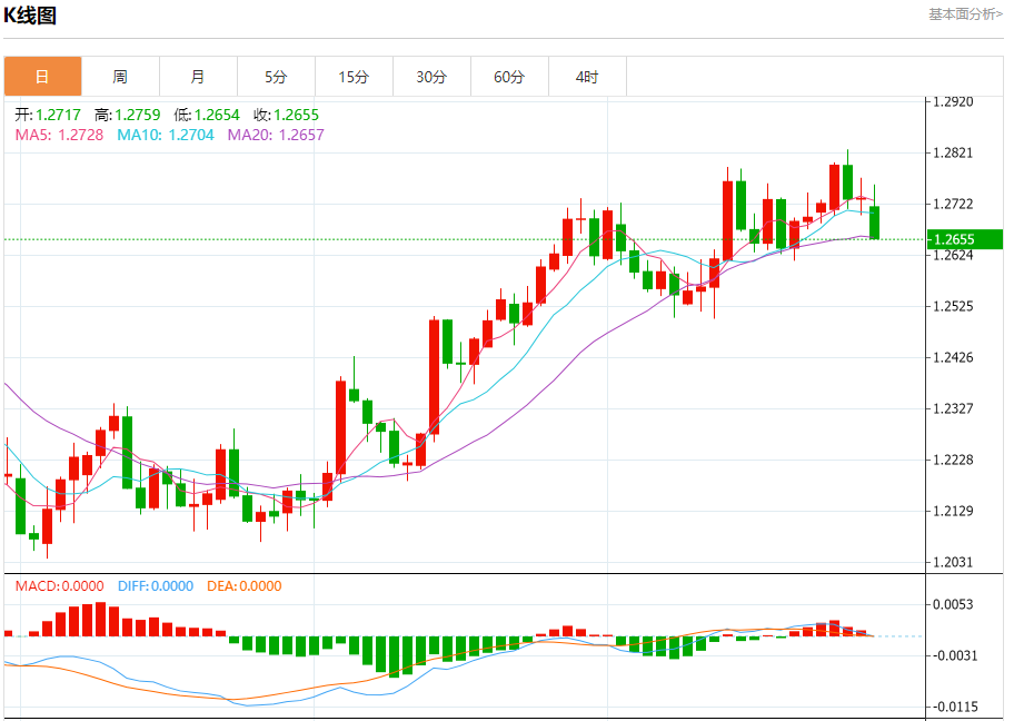 预计今天的交易区间在1.2650支撑和1.2800阻力之间。
