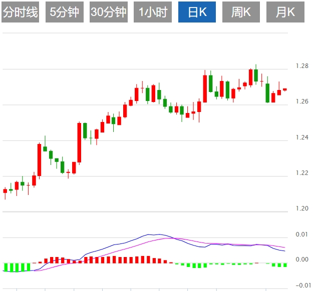 英镑背后的动能开始消失,英镑/美元有可能陷入日K线拥堵,因为50日均线准备确认200日均线在1.2550以南的看涨交叉,而直接的技术上限位于上周的最高买盘1.2825附近。