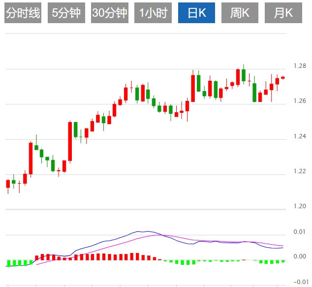 英镑/美元结束了连续四天的上涨,周二欧洲早盘在1.2750附近走低。英镑/美元正处于关键时刻,跌破主要水平的可能性增加了进一步下行压力的可能性。21 天指数移动平均线 (EMA) 位于 1.2684,是需要监控的直接支撑位。