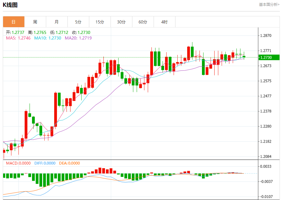 周一欧市盘中,英镑兑美元交投于1.2730,跌幅为0.16%。