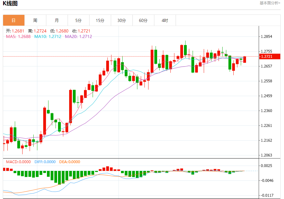 周一欧市盘中,英镑兑美元交投于1.2722,涨幅为0.16%。