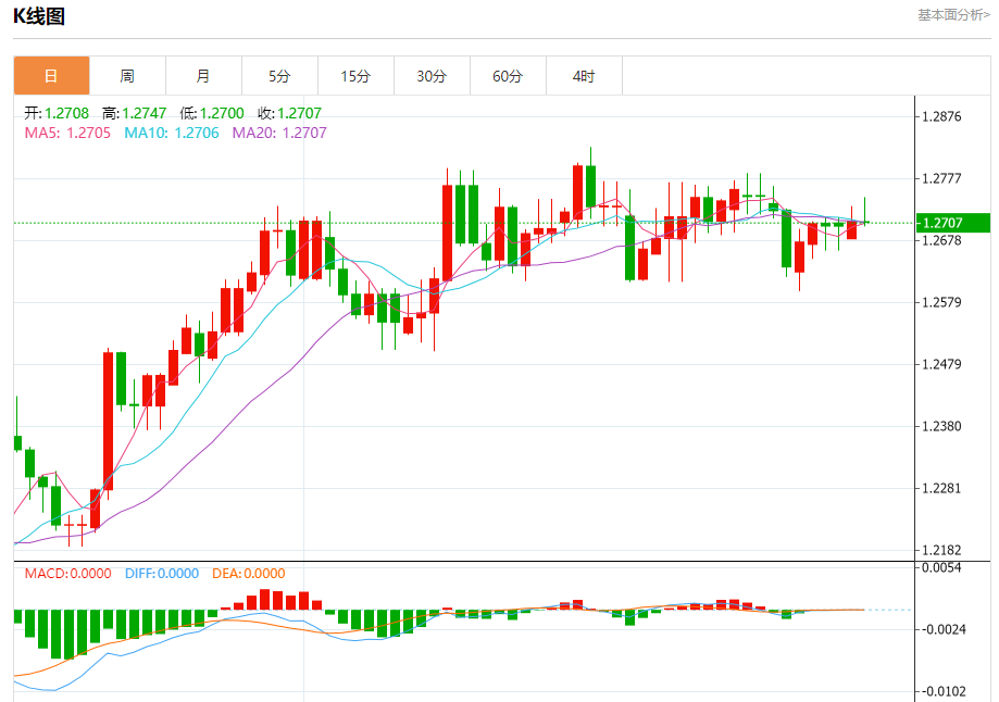周二欧市盘中,英镑兑美元交投于1.2707,跌幅为0.02%。