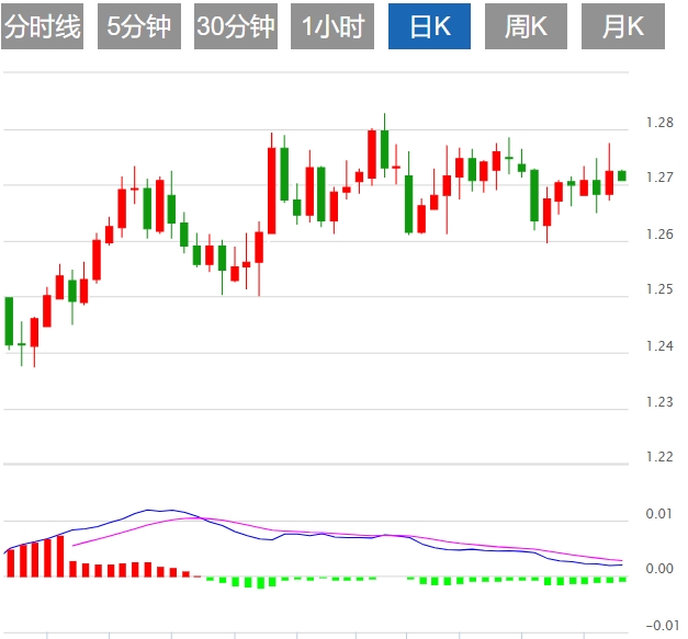 周四亚市早盘,英镑兑美元小涨。 在风险偏好情绪的支撑下,英镑兑美元收复了1.2700大关。 然而,周四公布的美国第四季(Q4)国内生产毛额(GDP)初值可能会引发市场波动。