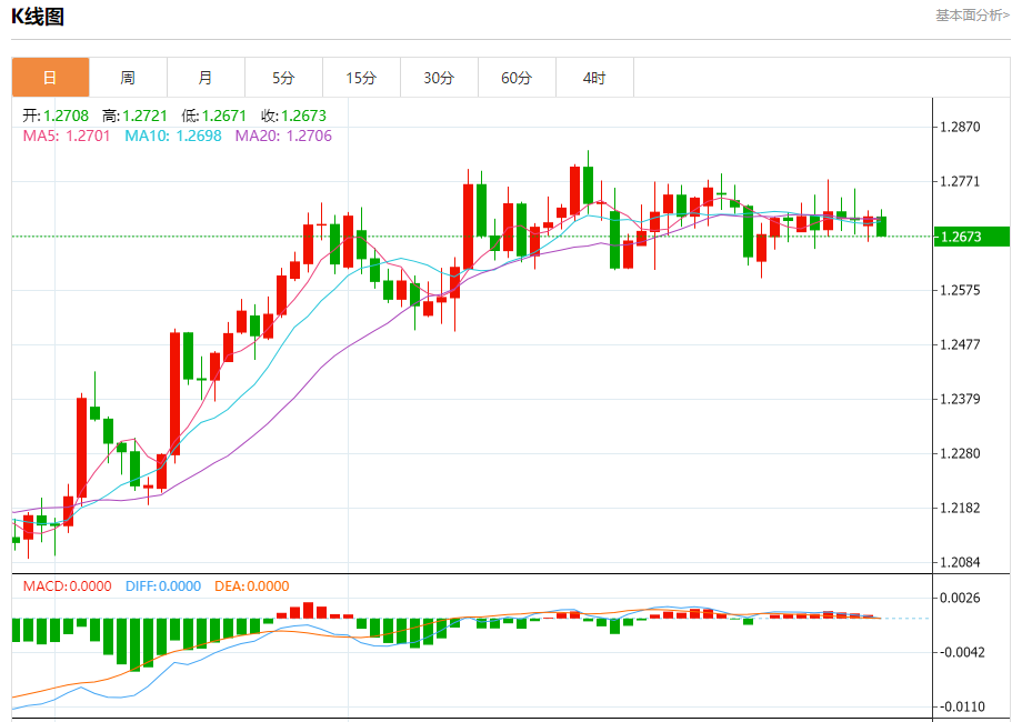 周二欧市盘中,英镑兑美元交投于1.2674,跌幅为0.27%。