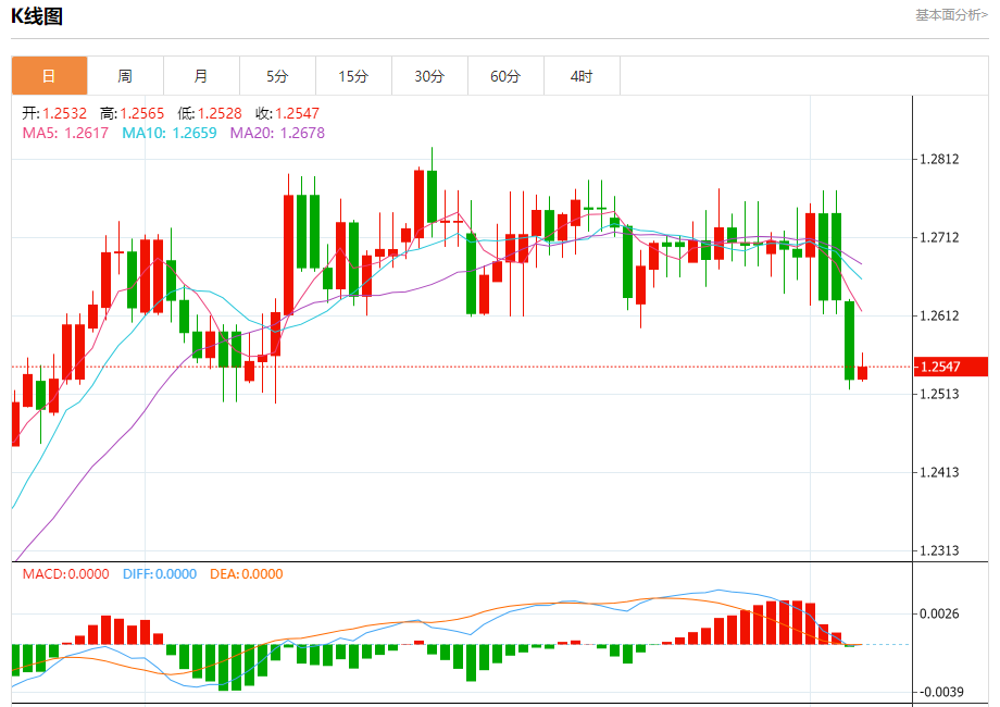 周二欧市盘中,英镑兑美元交投于1.2548,涨幅为0.12%。